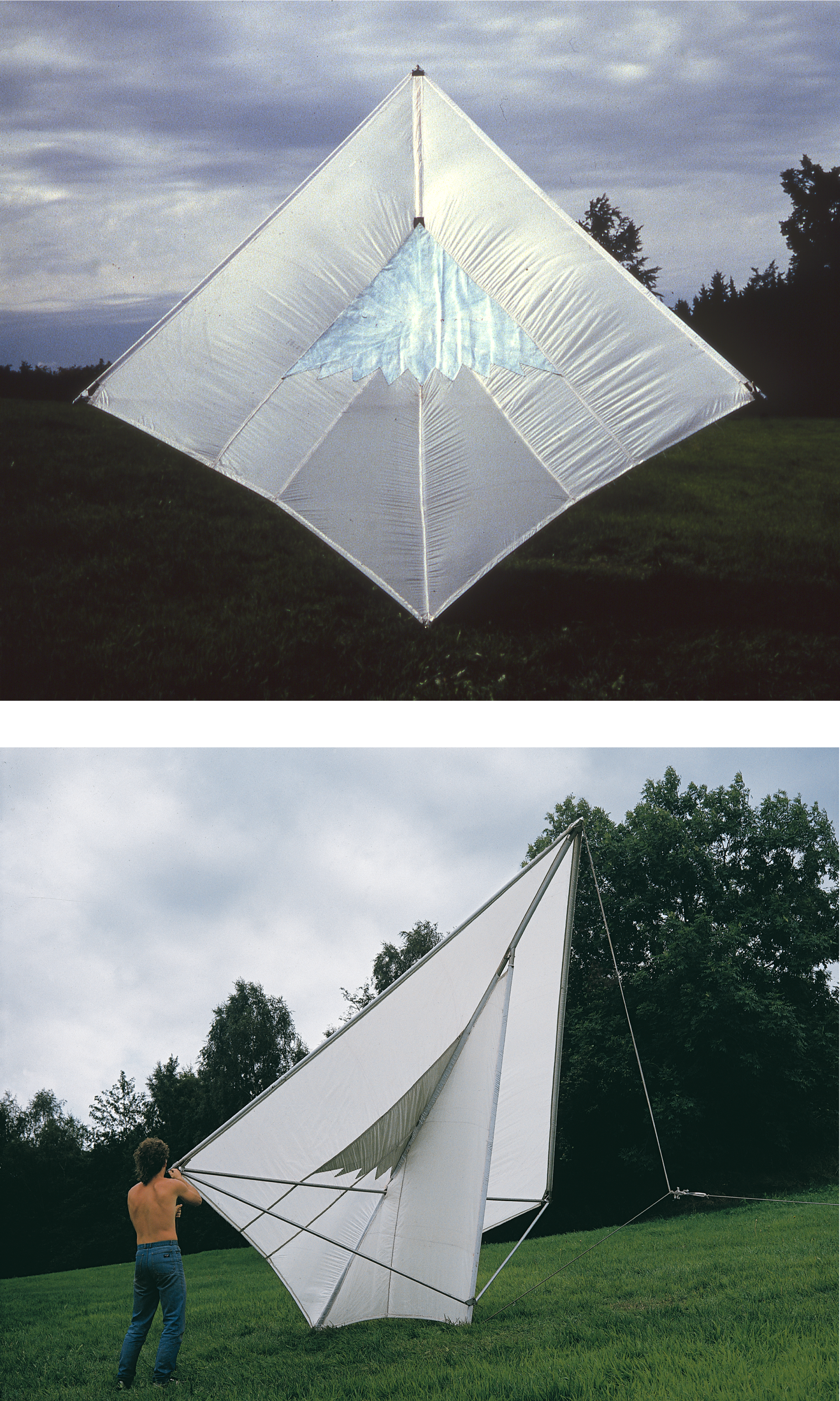 Dural-aluminum, parachute silk, w. 400, h. 180, l. 500cm (w. 157”, h. 71”, l. 197”)