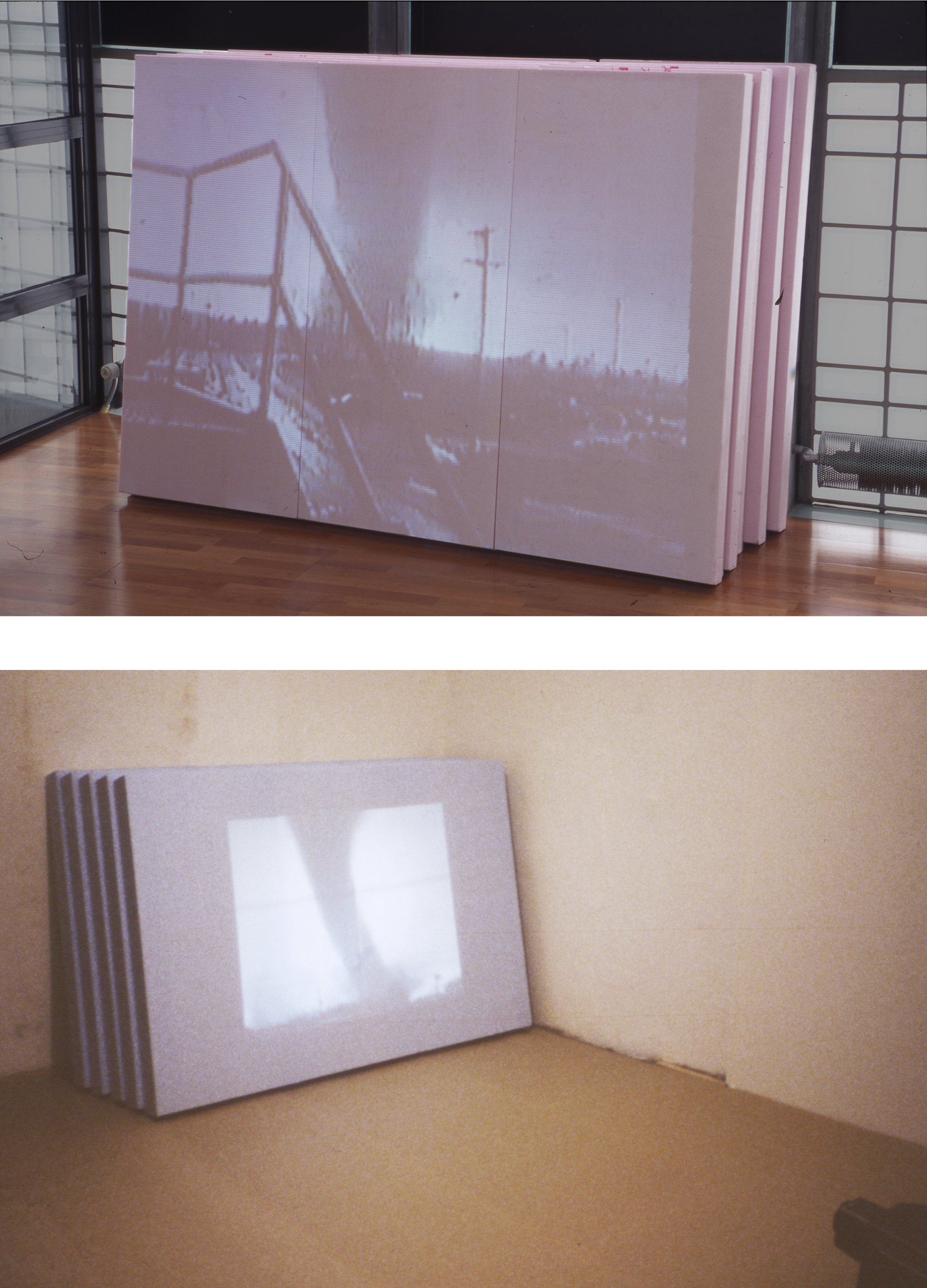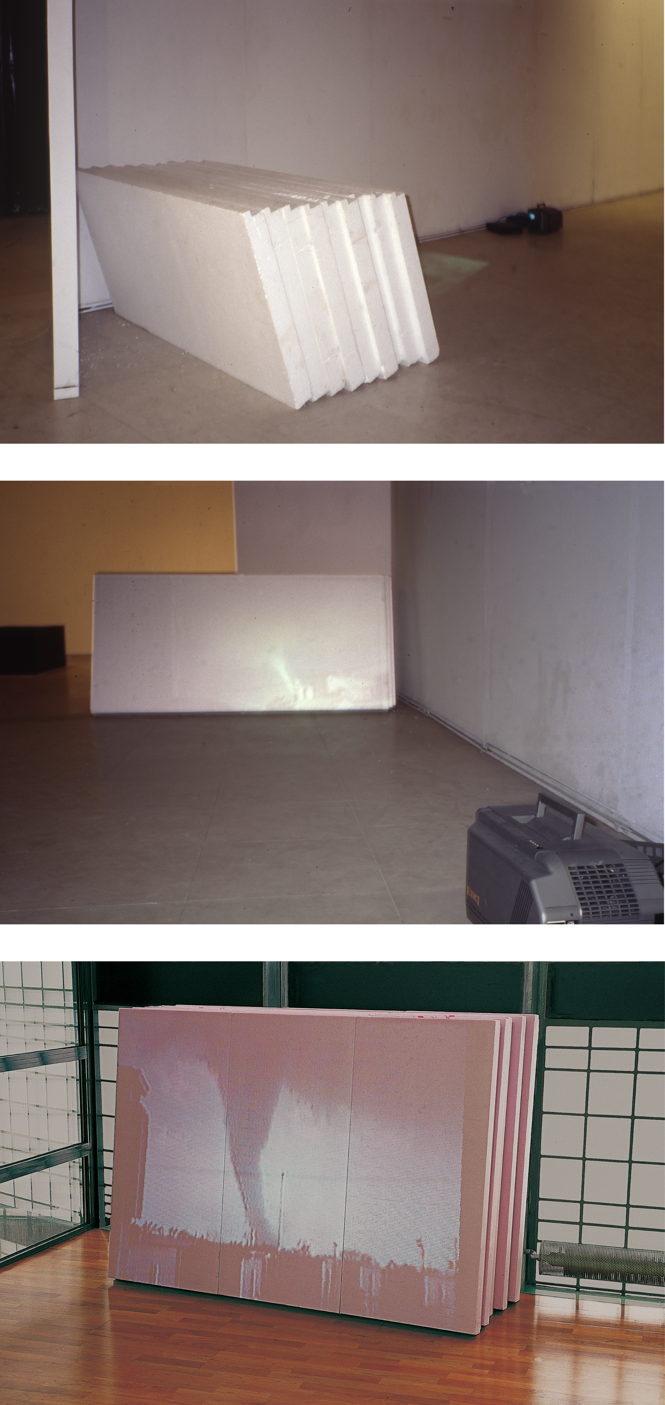 materiály: videoprojekce 2 min. dok. záběrů tornád v Kansase 1991 na polystyrénové panely