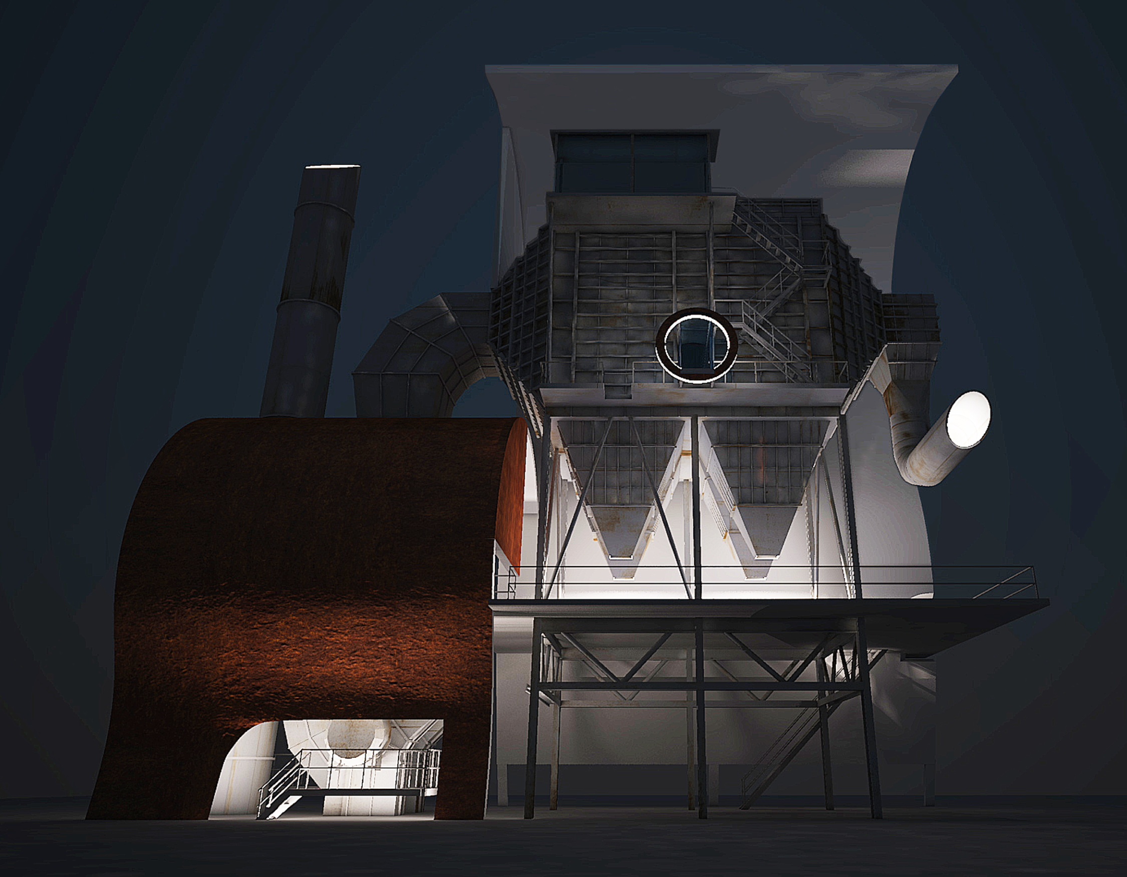 filtrační jednotky koksovací pece do stylizované podoby boha Radegasta, Ostrava